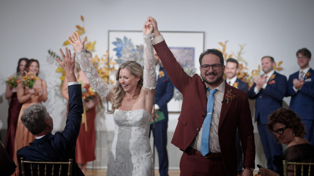 Grace and Max held their ceremony at the Pennsylvania Acadamy of Fine Arts. A beautiful and unique building holding historic Philadelphia treasures. Grace and Max shared their vows, Grace speaking in Italian, for Max’s Mom, and Max including references to their favorite show Survivor.